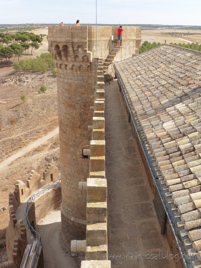 El tramo final de la visita al Castillo de Belmonte se desarrolló en la parte superior del mismo: sus almenaras, torreones y Torre del Homenaje, desde donde se obtienen unas vistas impresionantes de Belmonte y del recinto a los pies del castillo que albergaría el Torneo Internacional de Combate Medieval.