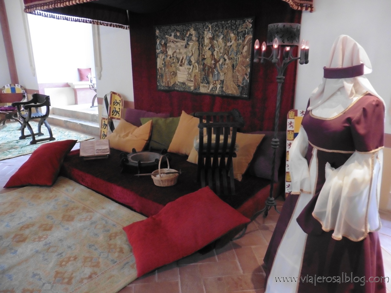 Tras el Patio de Armas, visualizar la citada proyección y pasar por la sala donde se encuentran diferentes imágenes e infografías acerca del castillo y su restauración, comenzaba el recorrido y la visita en sí por las distintas estancias del pasillo, recreándonos en la historia y los hechos acontecidos en cada lugar y su significado.