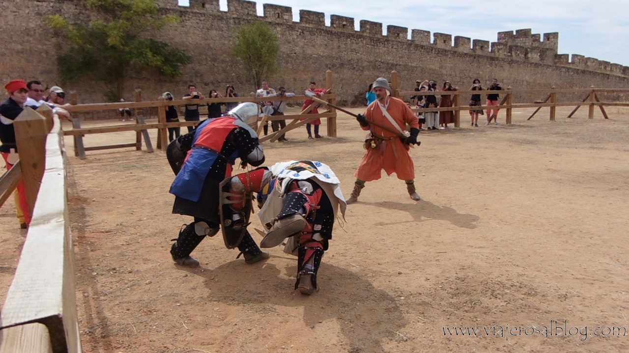 Y tras ello, y bordeando el Castillo de Belmonte por su parte izquierda hasta su parte exterior, bajando a la amplia explanada (con una magnífica visión del castillo a nuestras espaldas) donde se celebra el evento y, por ejemplo, donde igualmente se rodó el torneo medieval en la película El Cid.