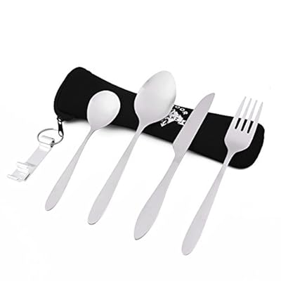 OUTDOOR FREAKZ Cubiertos para cámping – Vajilla de exteriores de acero inoxidable con bolsa de neopreno