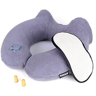 Raniaco Almohada Inflable para el Cuello, la Mejor Almohada para el Dolor de Cuello al Dormir en Aviones, Viajes, Coche con Tapones, Antifaz para Dormir