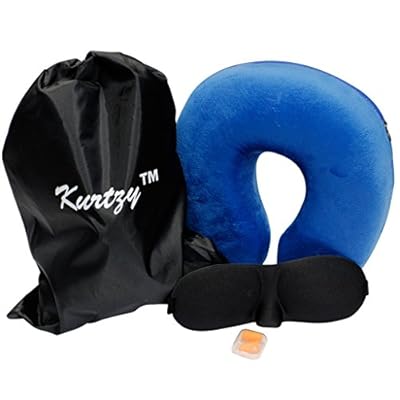 KurtzyTM Lujoso Set Almohada Viaje Espuma Viscoelástica Cómoda Máscara de Ojos Tapones Oídos Estuche