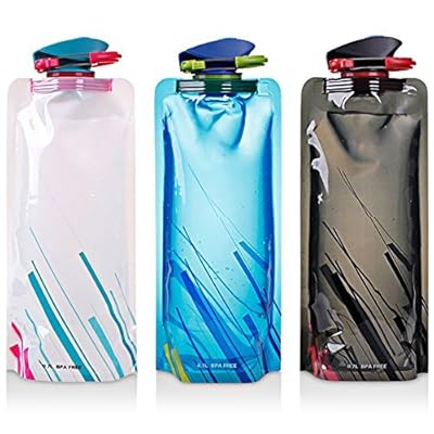 Botella de agua plegable conjunto de 3, MAXIN flexibles plegables botellas de agua reutilizables para senderismo, aventuras, viajes, 700ML.