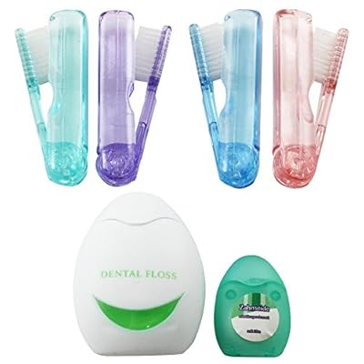 COM de Four® Juego de 4 Viaje Cepillo de dientes Medium Incluye dientes seda 75 m + 20 m