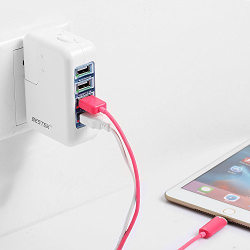 BESTEK Cargador USB con 4 Puertos USB + Adaptador Viaje Intercambiable Cargador Enchufe 35W 2,4A/5,2A (EE.UU, RU, UE, AU, Japón, China) y Cable de Prolongación