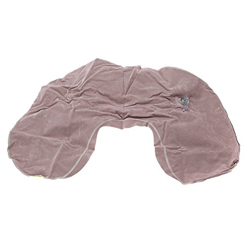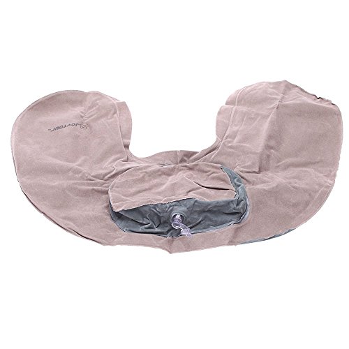 JOYTOUR portatil plegable Cale-cello almohada de cuello almohada de aire inflable Forma de U en PVC flocado por acampar viaje oficina hotel gris