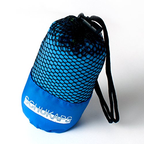 Schukaps Fitness – Toalla de microfibra 80x40cm Azul con bordado Verde compacta y de secado rapido con bolsa para viajes – Deporte Piscina Playa Yoga y Gimnasio