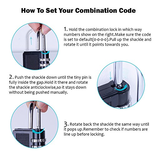 Cerradura de combinación Tontec consta de hoja chapado en aleación material-zinc y duraderas. cáustico y lo suficientemente fuerte para la luz para trabajo uso como maletas, taquilla, caja de herramientas, armario, funda y bloqueo etc. acerado a romper el código de combinación de 10000 Códigos. mejor elección para usted. característica: Componente materiales: hoja chapado en aleación de zinc y utilizar con: uso para la escuela taquilla,Cerraduras de maletas, archivadores, caja de herramientas, caso y etc. indicadas: 3,2 * 0.7 * 1,6 pulgadas Peso: 0.23lb cómo configurar su código de combinación: 1 Números mantener el candado de combinación en la forma en que se muestran en el jurisprudencia. asegúrese de que el código se ajusta a por defecto (0 – 0-0 – 0) para sacar el grillete y girar hasta que se Puntos hacia usted 2. forzar el grillete hasta que la Tiny Pin es totalmente en la abertura. interior que hay y girar la grillete anticlockwise, por lo que se mantiene sin que se empuja manualmente 3. girar hacia atrás el grillete de la misma manera hasta que se despliega. recordar para comprobar si números son Line Up a priori de bloqueo del paquete 2 * Tontec® cerradura de combinación